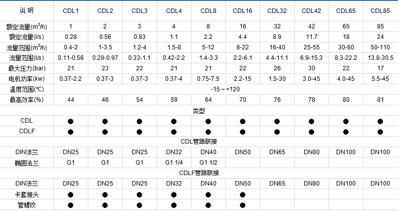 CDL/CDLF是一種多功能產(chǎn)品,可以輸送從自來水到工業(yè)液體的各種不同介質(zhì),適應(yīng)于不同溫度、流量和壓力范圍,CDL適用于無腐蝕性液體,CDLF適用于輕度腐蝕性液體。